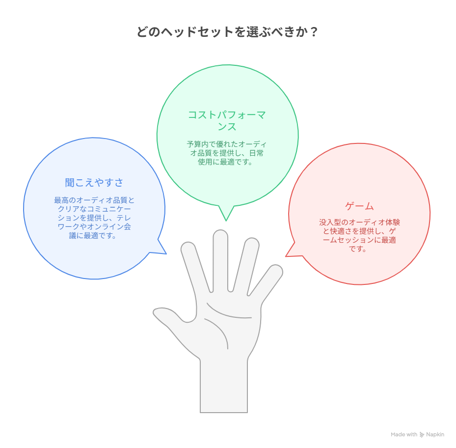 2025年の最新トレンドを踏まえ、聞こえやすさとコストパフォーマンスを両立したヘッドセットを厳選しました。音質、装着感、価格のバランスを総合的に評価し、実際に使用したユーザーの声も参考にしています。