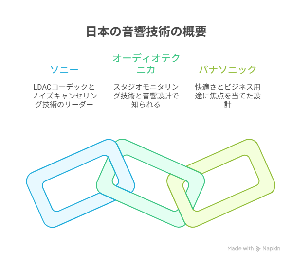 日本の音響メーカーは、精密な音質調整と品質管理で世界的に高い評価を得ています。ソニー(Sony)は、LDAC コーデックの開発元として、Bluetooth音質の向上をリードしています。WH-1000X シリーズは、業界最高レベルのノイズキャンセリング性能を持ち、機械学習による環境適応機能も搭載しています。