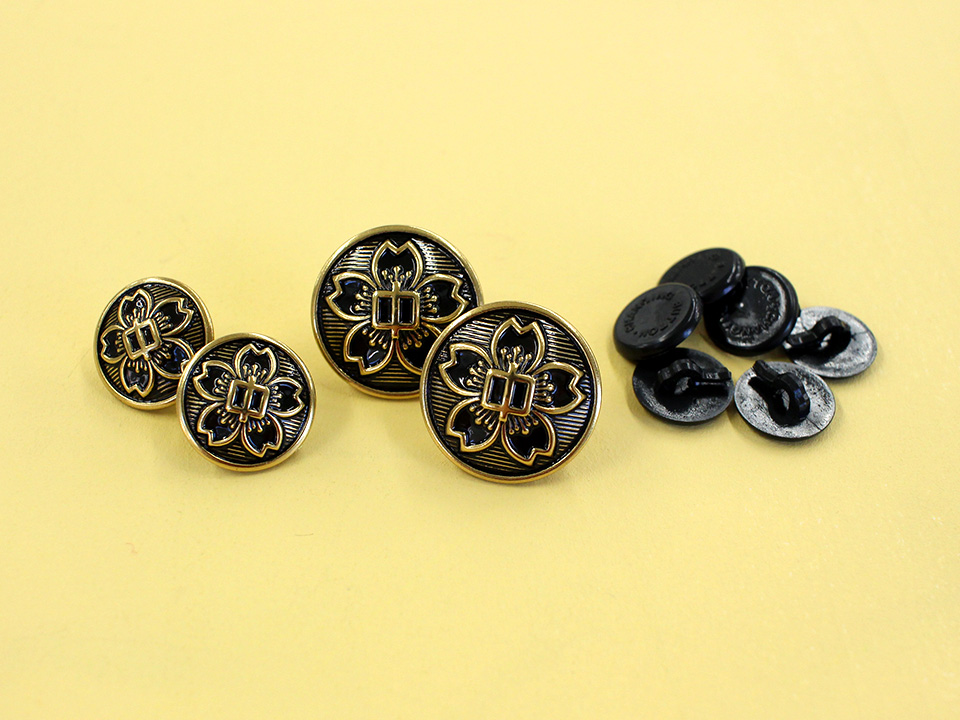 クラフトハートトーカイやユザワヤなどの手芸店には、学生服に近いデザインの金ボタン・銀ボタンが豊富にあります。