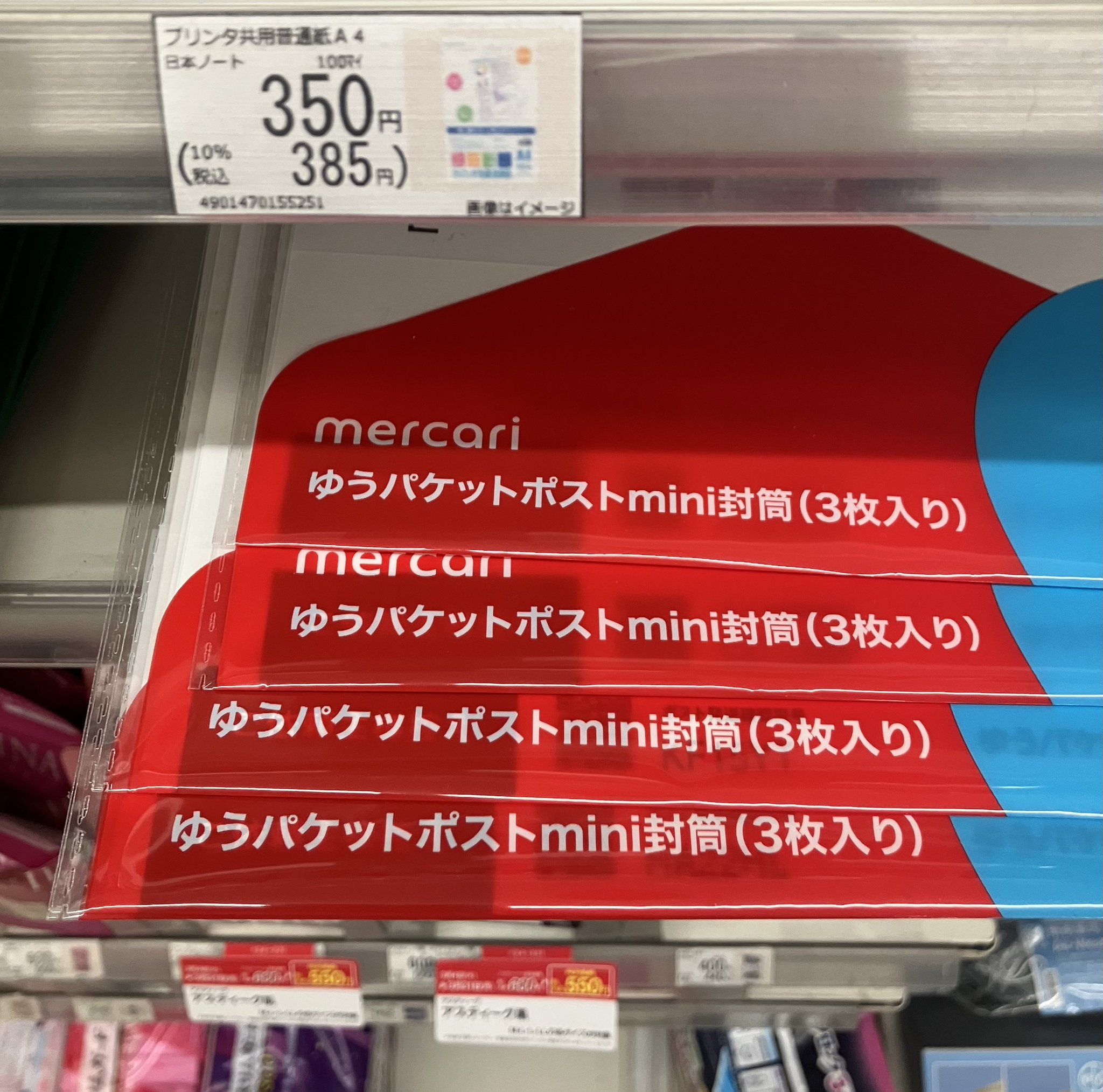 最近はフリマアプリ利用者の増加により、郵便局やローソンで在庫切れになることもあります。